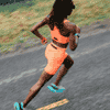 • A stylized illustration of a black athletic shoe with white and orange accents, depicting the shoe in a side view.